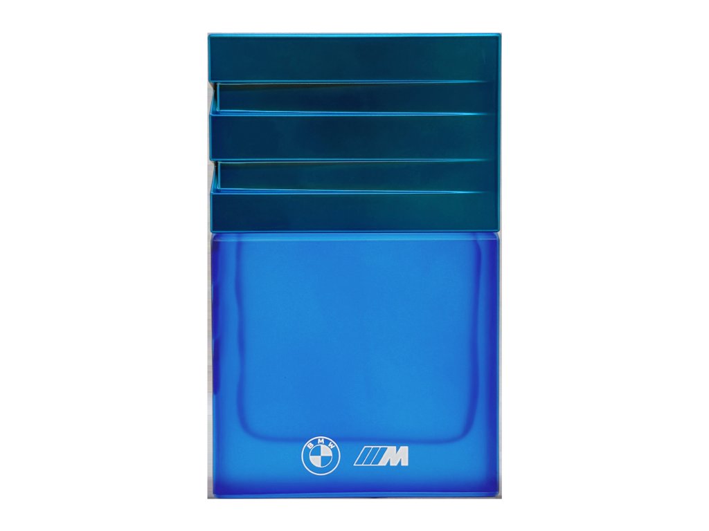 Minimalistický flakon ve světle modré barvě odkazuje na první pruh loga BMW M a podtrhuje čistý, ikonický design celé kolekce BMW M Fragrances.