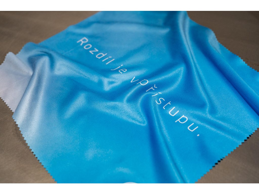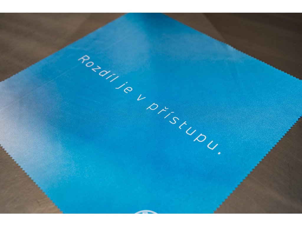 Stylový vzhled: Hadřík je opatřen kvalitním plnobarevným potiskem, který z něj dělá i elegantní doplněk do vaší brašny, kanceláře nebo auta.