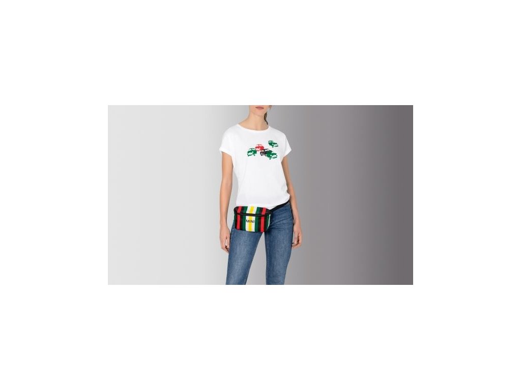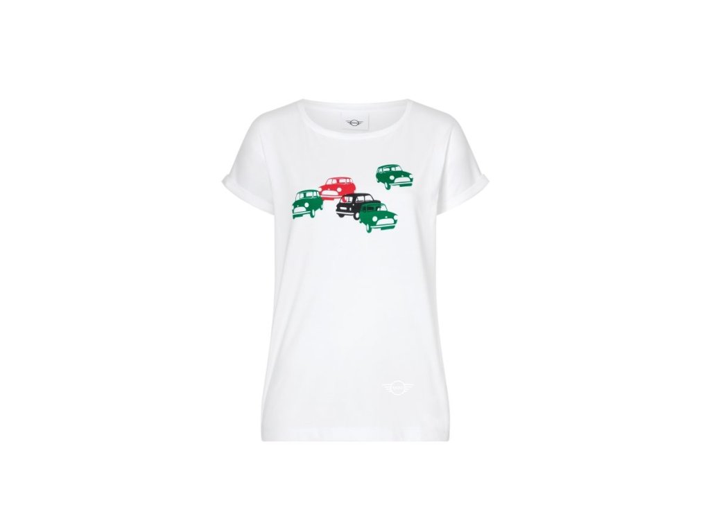 - Vícebarevný potisk automobilu Mini Cooper v barvách British Green, Coral a Black.