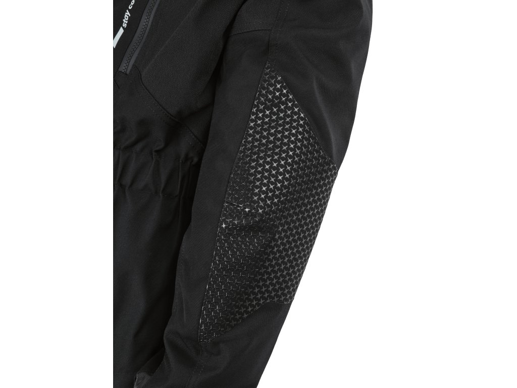 🔧 Perfektní ergonomie: Strečové vložky na vnitřní straně rukávů zajišťují, že vás bunda neomezuje při manipulaci s řídítky. Šířku rukávů, manžet i pasu lze snadno individuálně nastavit.