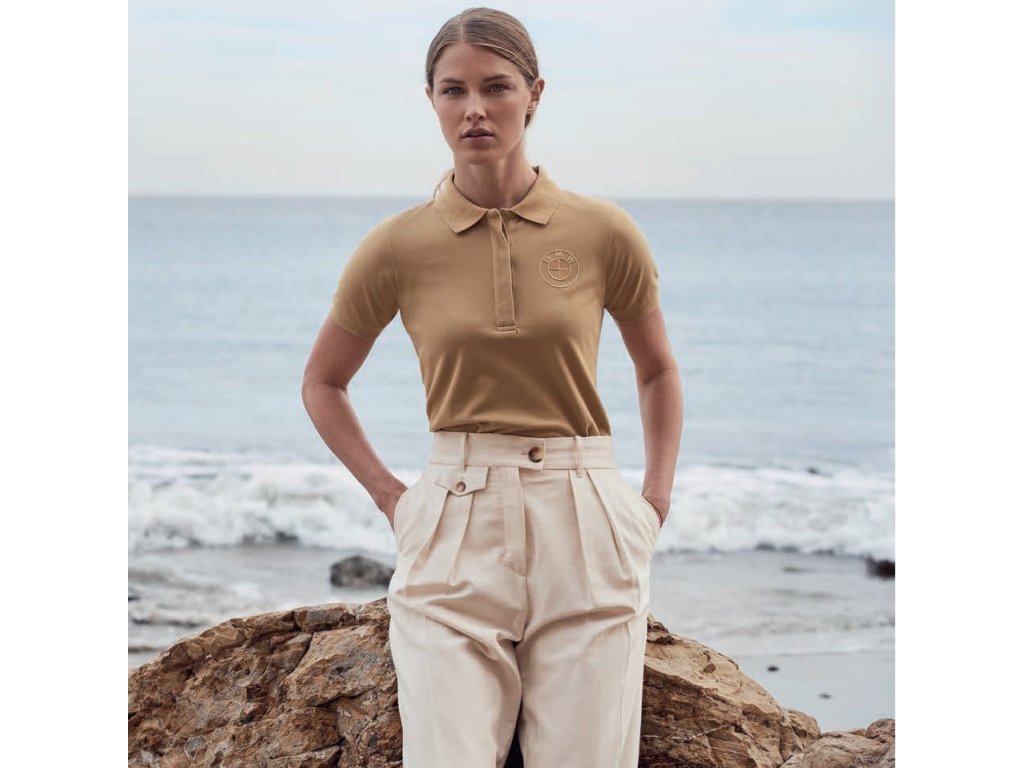 - Dámske polo tričko klasického strihu so skráteným predným dielom.