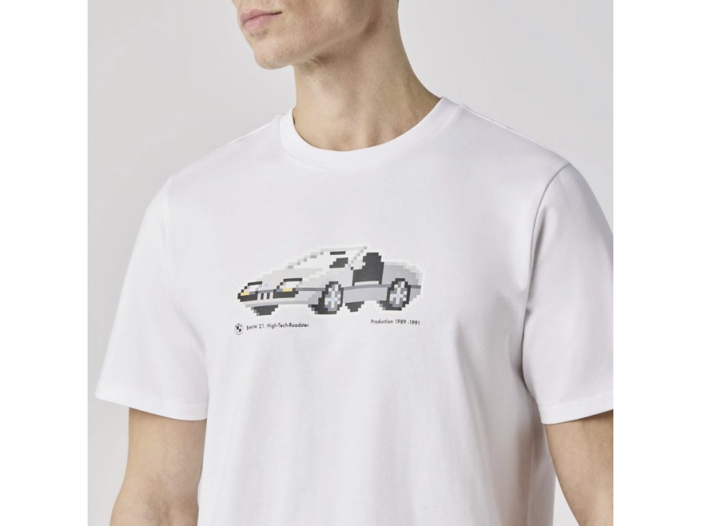 Unisex tričko BMW Z1 Pixel Car je poctou legendárnímu modelu z přelomu 80. a 90. let. Klasická bílá barva a výrazná pixelová grafika BMW Z1 uprostřed hrudi jsou charakteristickými prvky tohoto trička BMW.